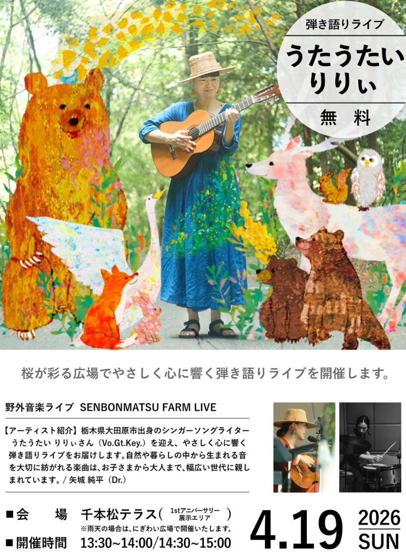 弾き語り活動のほか、幼稚園、保育園、小学校でのLIVE、絵本と音楽を融合させた絵本LIVEなど、全国の野外イベント、クラフト市などで活動中。