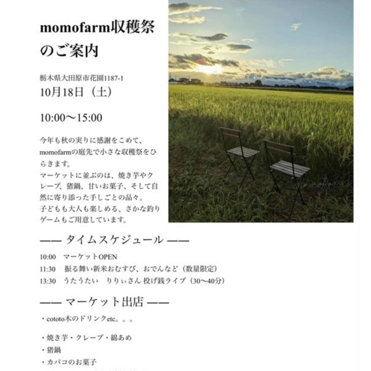 今年も秋の実りに感謝をこめて、momofarmの庭先で小さな収穫祭をひらきます。 マーケットに並ぶのは、焼き芋やクレープ、猪鍋、甘いお菓子、そして自然に寄り添った手しごとの品々。 子どもも大人も楽しめる、さかな釣りゲームもご用意しています。