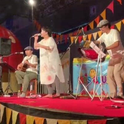 音楽に合わせて絵本を読み聞かせしたり、唄を聞いてもらったりみんなで唄ったり、踊ったりする参加型のライブ。
